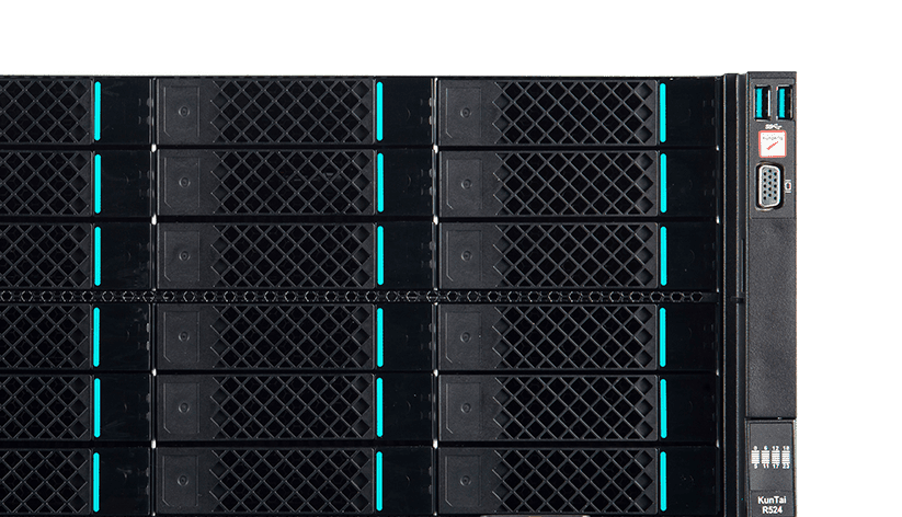 KunTai R524 存储型服务器是918搏天堂数码基于鲲鹏处理器推出的新一代 ARM数据中心服务器。主要面向存储业务,具有海量存储、高性能、低功耗以及易扩展的特点,适合为大数据分析、软件定义存 储等应用场景的工作负载进行髙效加速。